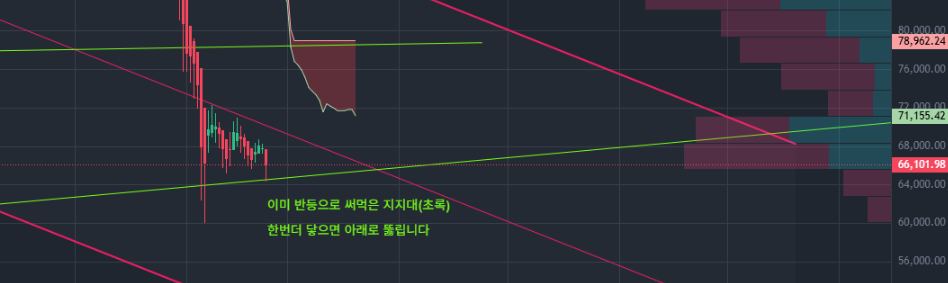 일단 이전 제글의 분석에서 71.5k에서 숏을 치라 했지만 실제 반등은 71k까지밖에 나오지 못했습니다.