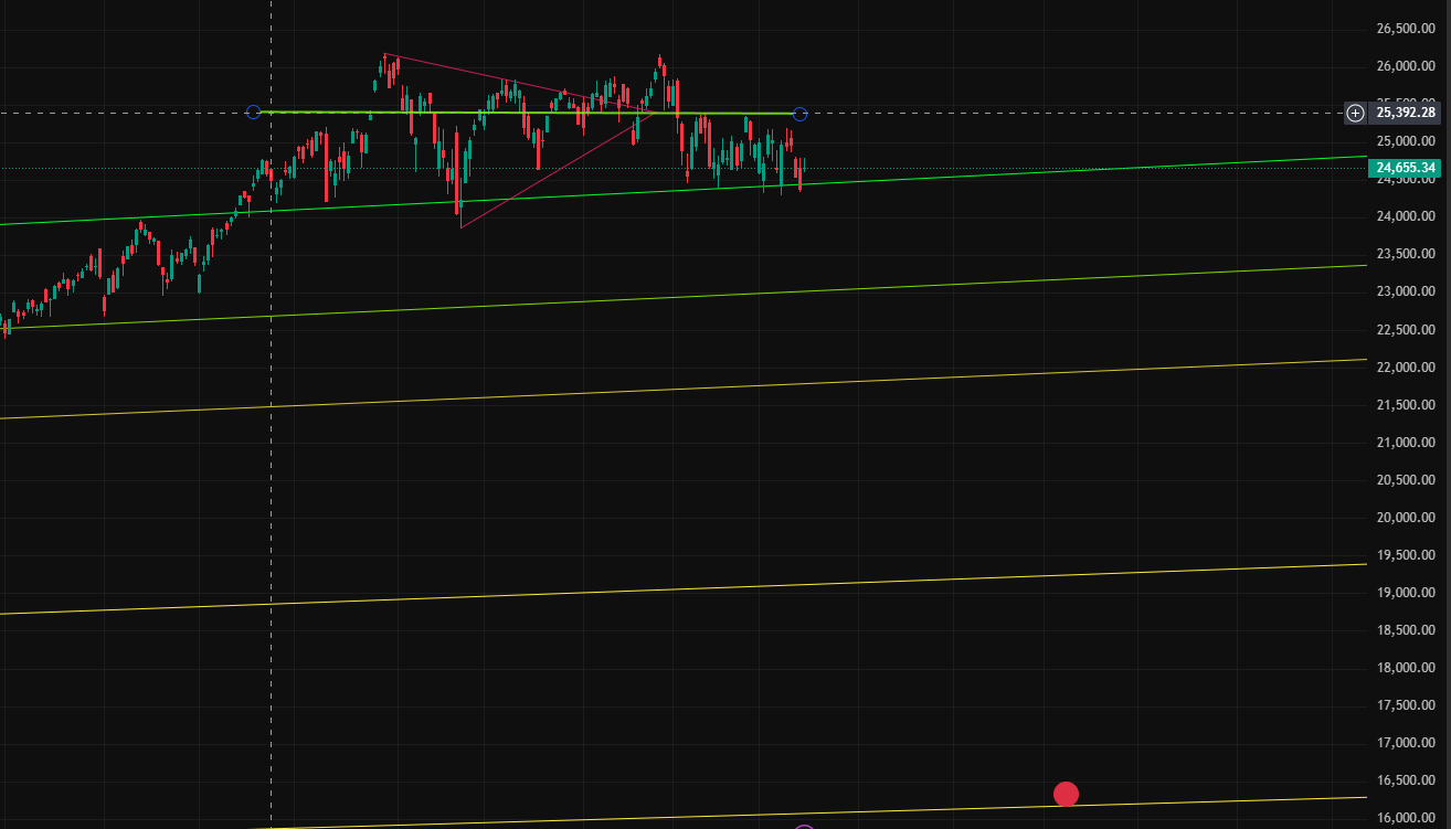 나스닥 전망, 진심으로 안좋음 튀었다가 다시 진입하는거 추천 N 계속 똑같은 글써서 미안한데 나스닥 진짜 상황안좋음 저거 아래선 24300 밑에서 한번만 몸통마감해도 빅쇼트 확정임. 최대 22900까지 원웨이로 주봉 1개로 밀릴 수 있음 내가 이전에 쓴글 한번 봐보길 바람 Tradingview · 1시간 전 22 0 0