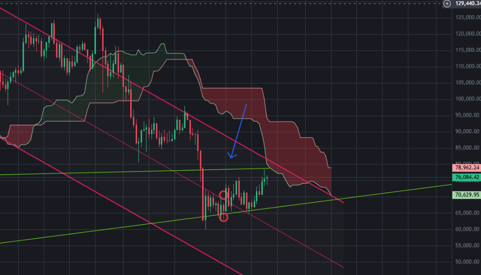 비트코인 78k에 강력한 구름 저항대 임박 N 일봉 저항대 구름구간은 이미 뚫었고 다음 78k에 마주치는 3일봉 구름대 매물을 뚫어야하는데 이거는 왠만한 매수세랑 호재아니면 뚫기 어려울것으로 예상 워뇨띠 · 2시간 전 20 0 0
