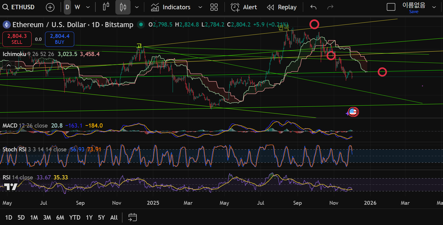 이더리움 및 알트코인은 최악의 상황 (MACD, Stoch RSI)