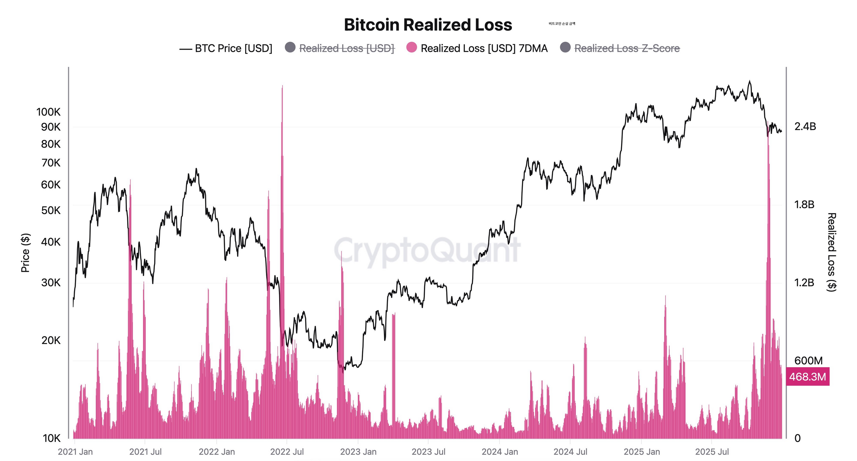 최근 실현손실이 약 4억 6천만 달러 이상 급증했음.
