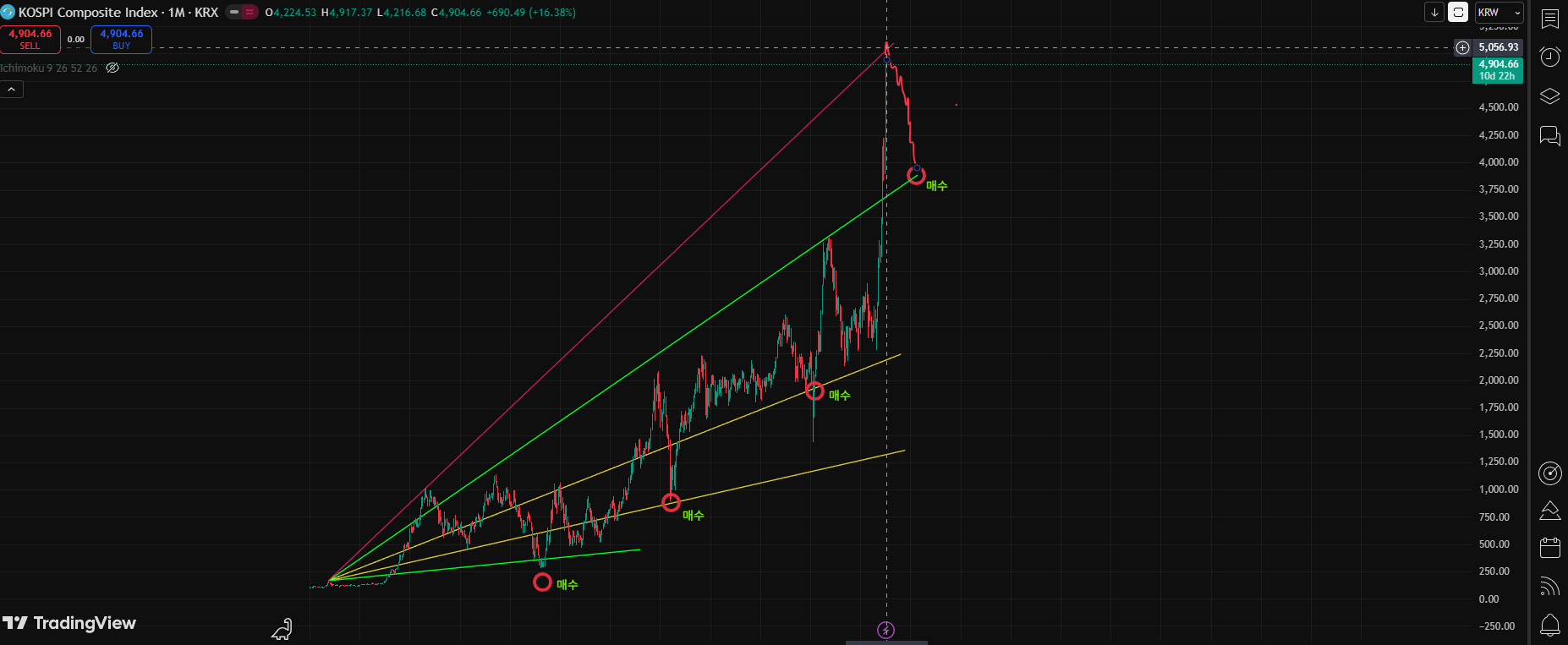 코스피 고점은 5050 부근에서 전량 매도하는것을 심각하게 생각해보아야 한다.