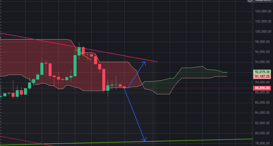 하방 관점도 마찬가지로 올리는걸 포기해버리고 살짝만 던져도 77k까지 밀릴 수 있는 구간입니다.