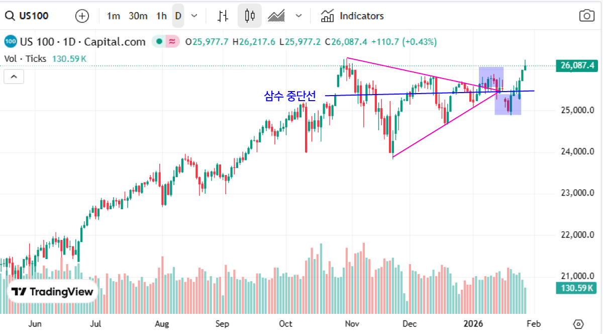 근데 만약에 중단(25500) 안주고 27000을 간다? 우리가 원하는 돌아올 수 없는 핵버블장으로 진입하는거