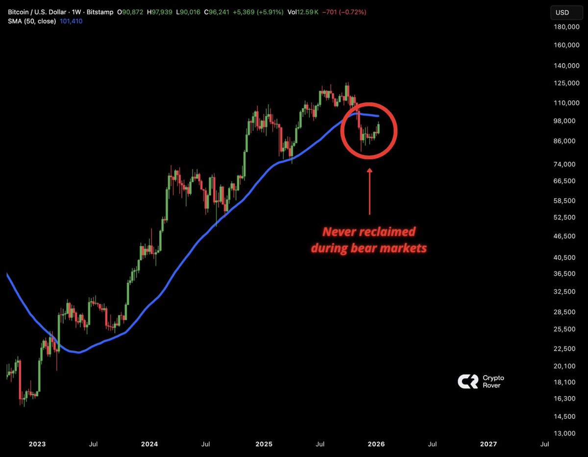약세장 땐 비트코인은 주봉 50이평선을 다시 상향 돌파하지 못한다.