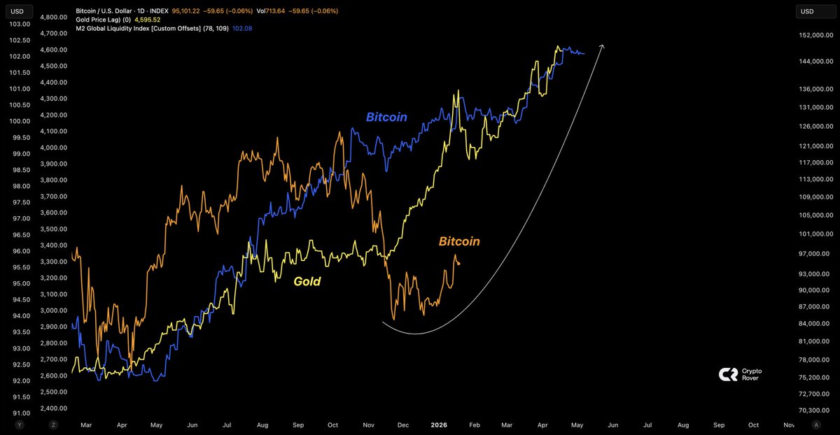 비트코인이 금이랑 글로벌 유동성 따라가면 곧 15만불 찍는다.
