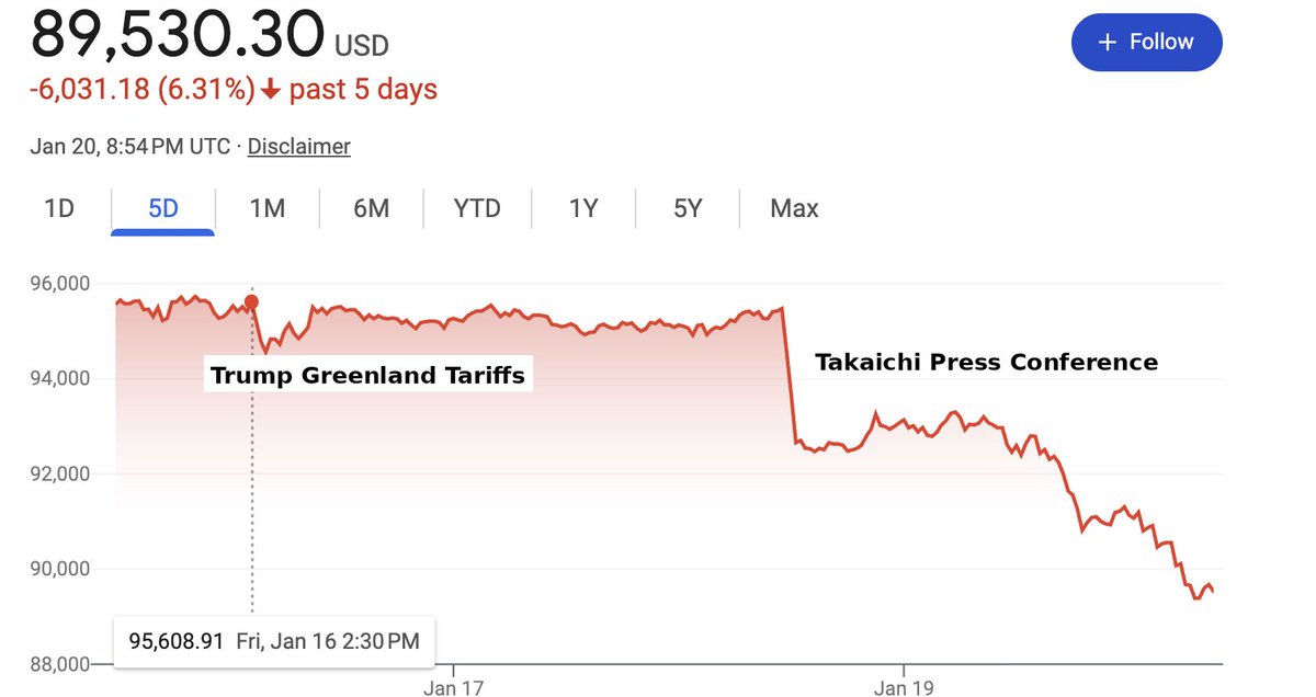 언론은 오늘 시장 학살을 그린란드 탓으로 돌리던데. 2시간 전 중립적 6 0 0 그린란드 아님. 일본임.비트코인은 24/7 거래됨. 스크랩 0 공유 관련링크 https://twitter.com/profstonge/status/2013720865205100545