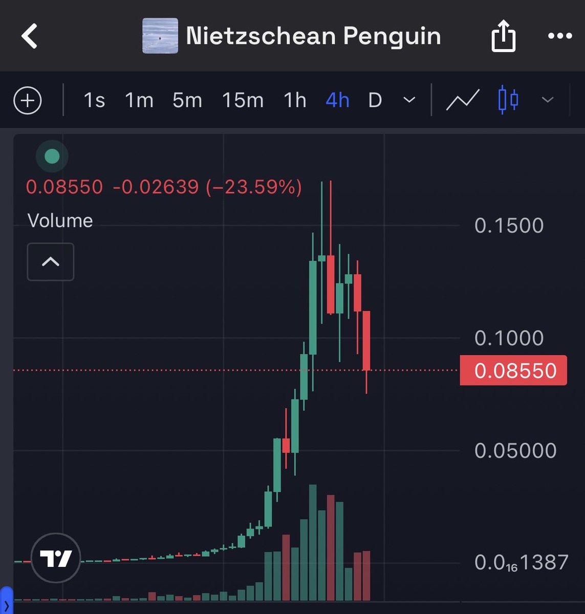 펭귄 토큰, 사기꾼에다 라프 인플루언서로 유명한 바스티유 BTC가 개발자인 거 다들 알게 되니까 바로 떡락 시작함.