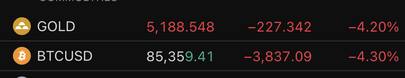 내가 말하던 걸 딱 보여주는 좋은 예시임. 1시간 전 중립적 11 0 0 금이 떨어지면 비트코인도 같이 떨어짐.로테이션 없음.댓글에선 싫어하겠지만, 시장이 말해주는 건 이거임. 스크랩 0 공유 관련링크 https://twitter.com/intocryptoverse/status/2016896852398887244
