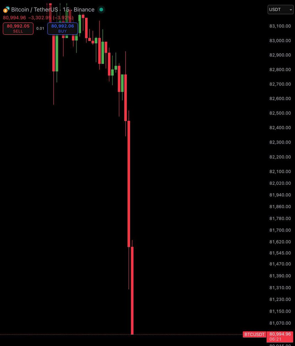 ๐จ์๋ณด: ๋นํธ์ฝ์ธ์ด ๋ฐฉ๊ธ 8๋ง ๋ฌ๋ฌ๋๋ก ๋จ์ด์ง๋ฉด์ ์ฐ์ค ์ ์ ์ฐ์.