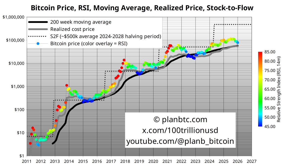- 200주 이동평균(200WMA) 5.8만 달러
