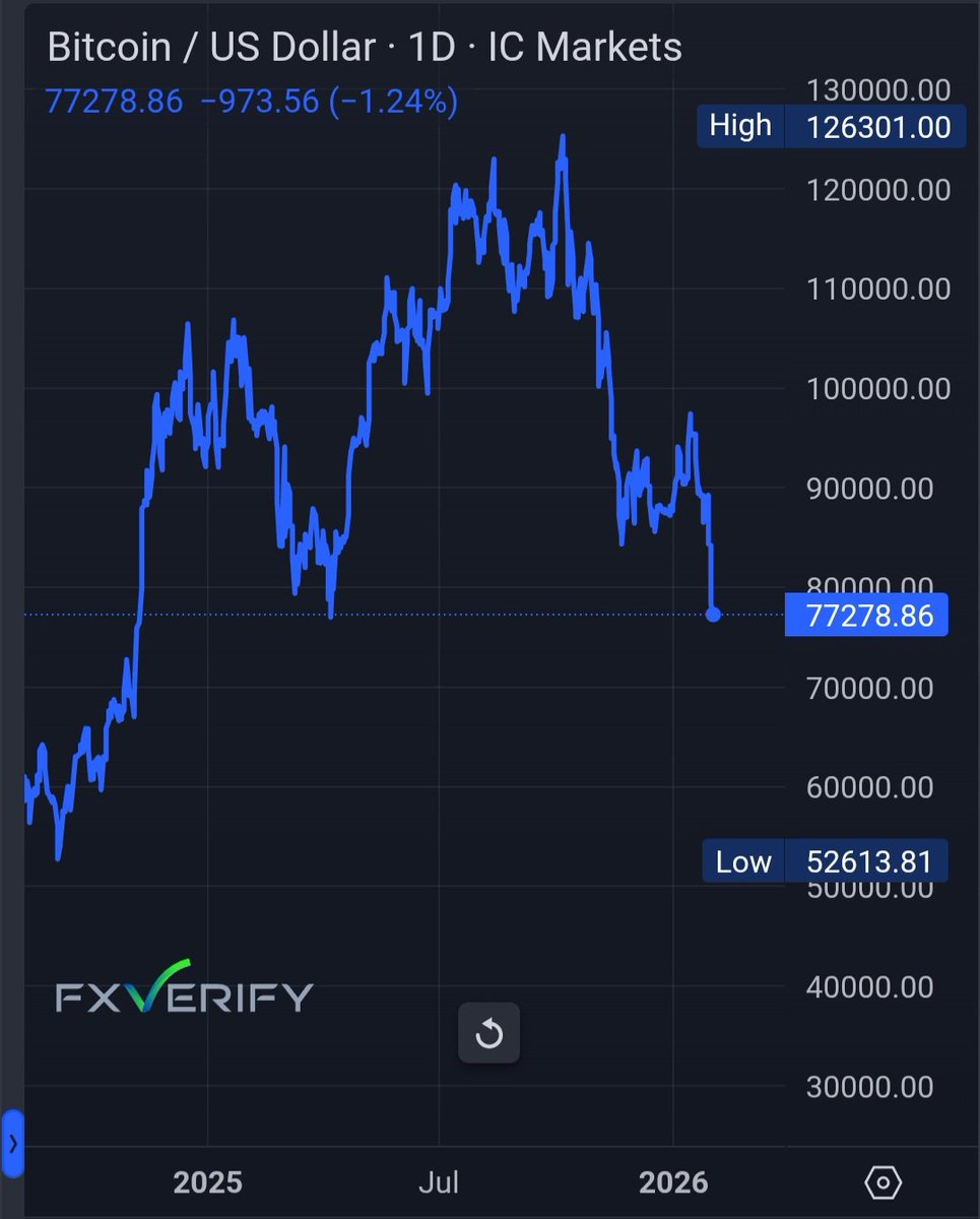 - 비트코인 1월 종가 78,635달러(ATH 대비 -38%) N - 200주 이동평균(200WMA) 5.8만 달러 - 실현가(RP) 5.5만 달러, 하락 중 - RSI 50 하회, 파란색: 공식 약세장 구간 - 역사적으로 200WMA/실현가 수준까지 밀릴 수 있음 - 다만 이번 불장이 약했고(빨간 구간 없음), 이번 하락은 얕을 수도 있음 3시간 전 중립적 31 0 0