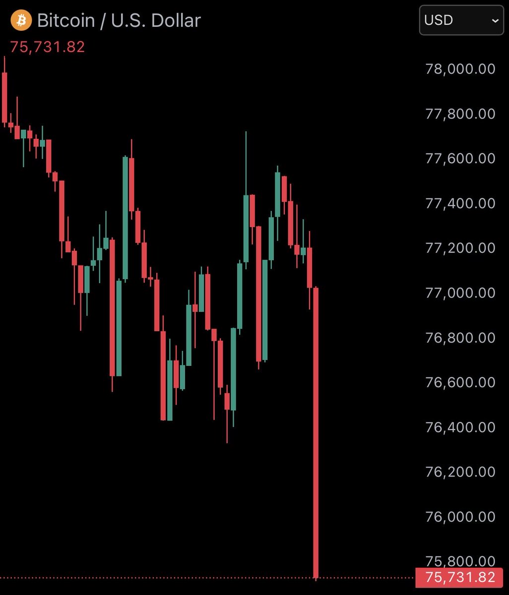 속보) 비트코인 7만6천 달러 하회