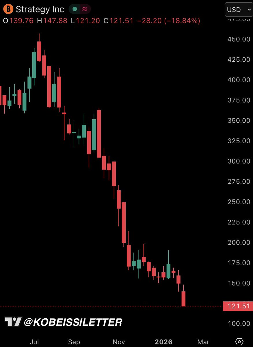 속보: 마이크로스트래티지($MSTR)가 회사의 비트코인 포지션 손실이 30억 달러에 근접하면서 2024년 9월 이후 최저가를 찍었다. 주가는 2024년 11월 사상 최고가 대비 현재 78% 하락했다.
