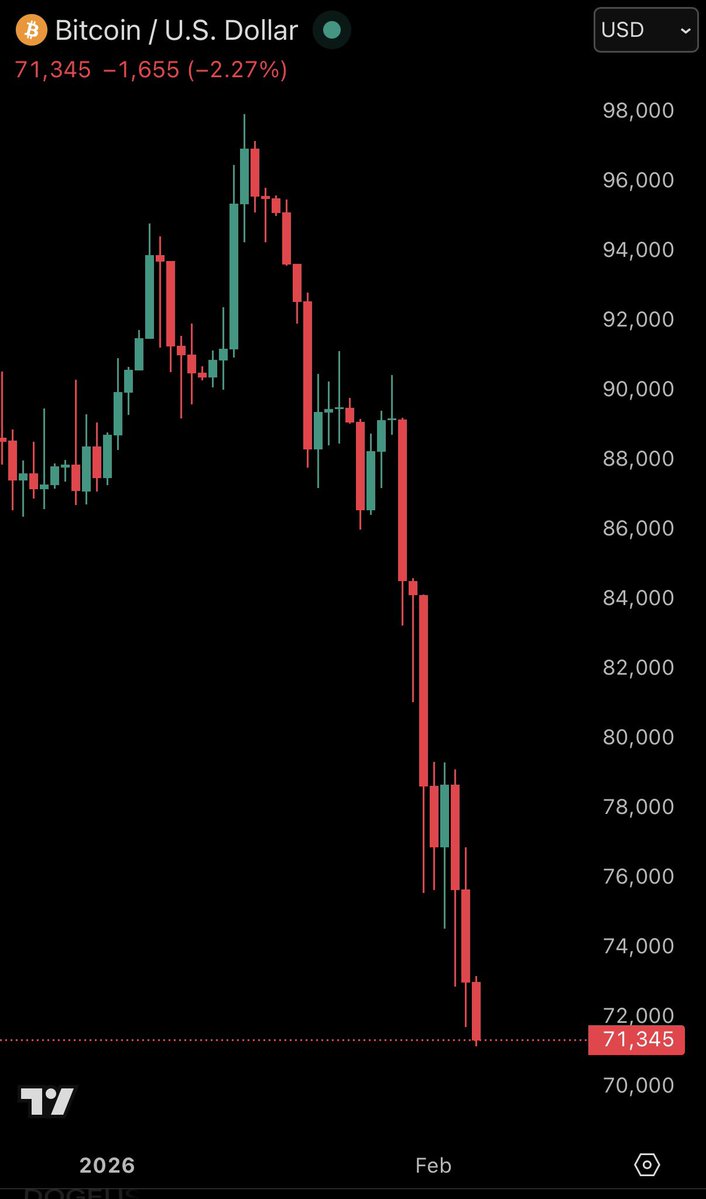 속보: 비트코인, 대선 이후 상승분 모두 반납… 현재 71,000달러까지 하락하며 2024년 11월 6일 이후 최저치 기록