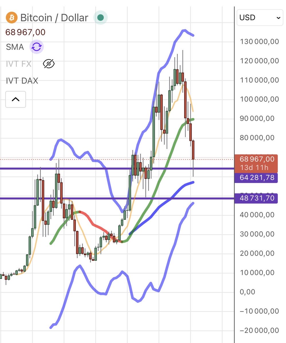 아마 지금쯤이면 큰 반등이 나올 구간에 도달한 것 같아. 물론 여기서도 한 번 더 크게 흔들리면서 5만5천 달러, 심지어 4만5천 달러까지 밀릴 수도 있겠지만, 그러면 바로 강한 반응이 나와야 해. 진짜로 반등, 회복이 있어야지.