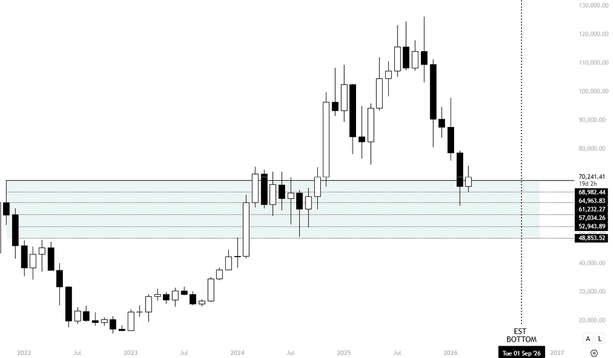 매집의 해 온갖 노이즈랑 내 중타임프레임 하방 뷰에도 불구하고, 스팟에서 내가 뭘 하는지는 이미 알겠지. 내 HTF 주문 세 개는 이미 체결됐다. 맞아, 난 여전히 더 낮은 가격을 본다. 그래도 투자 관점에선 -50% 구간은 언제나 선물이지, 특히 지난 10년 최고 퍼포먼스 자산이면 더더욱. 그래서 나 $72.8K에서 숏 잡았고 6만 밑도 본다. 근데 그걸 내가 메가 HTF에서 하는 거랑 헷갈리면 안 됨. 트레이딩이랑 투자는 완전 다른 게임임. 🤌