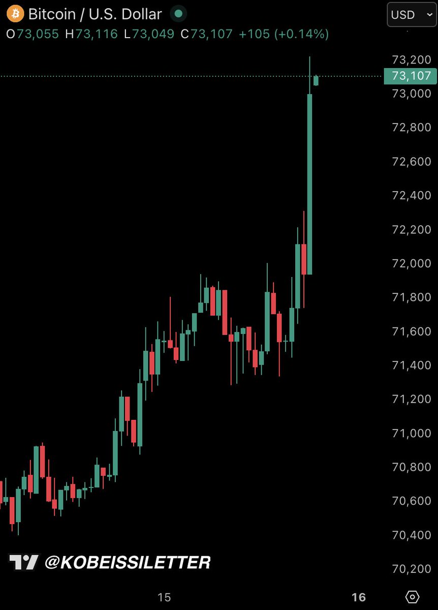 속보: 비트코인 7만 3천 달러 돌파, 미 증시 선물도 상승 전환