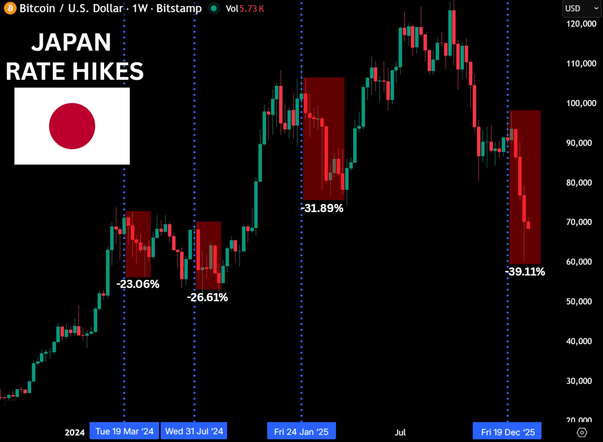์ผ๋ณธ์ด ๊ธ๋ฆฌ ์ฌ๋ฆด ๋๋ง๋ค ๋นํธ์ฝ์ธ์ ๊ทธ ๋ค ๋ช ์ฃผ ๋์ ์ต์ 20%๋ ๋น ์ก๋ค. ์ด๊ฑด ๋นํธ์ฝ์ธ๋ง์ ์๊ธฐ๊ฐ ์๋...