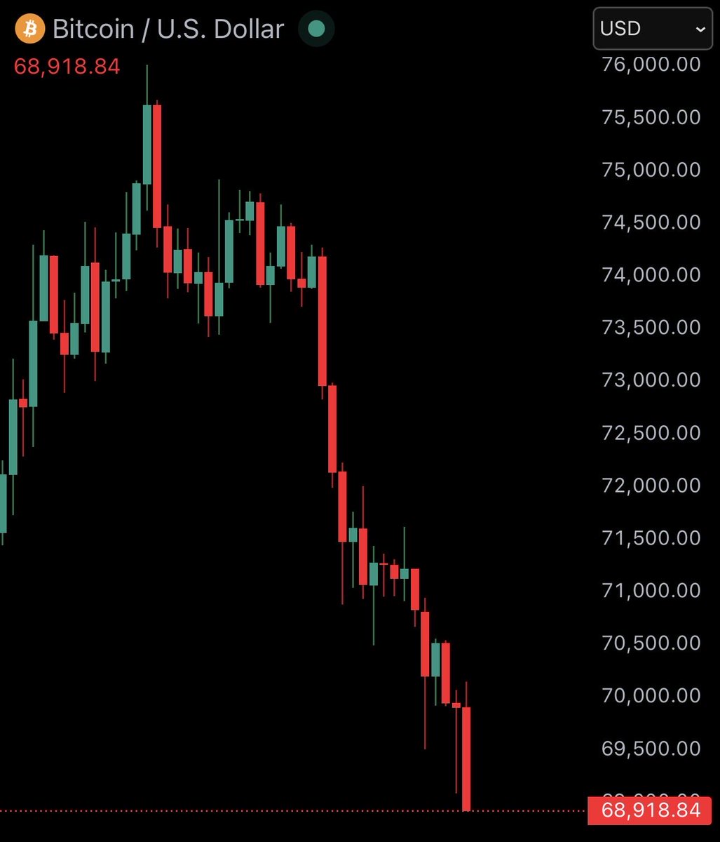 속보) 비트코인 6만9천불 밑으로 급락