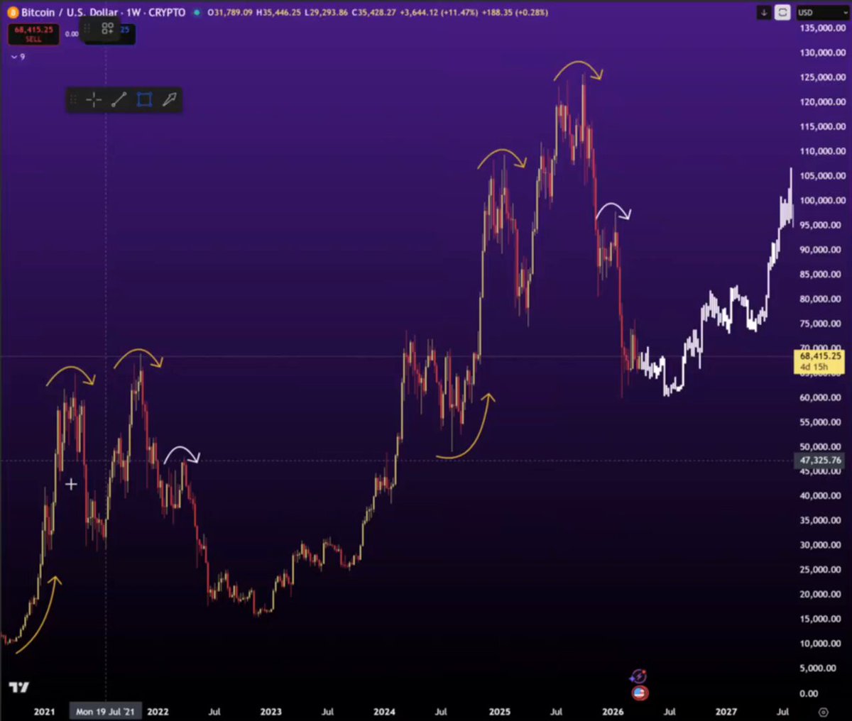 비트코인 3월 종가 $68,215 (RSI 44🔵) N 앞서 말했듯, S2F 기준 50만 달러 레벨(25만~100만 달러 범위)을 향한 다음 상승 전에 BTC가 200주 이동평균($59k)과 실현가($54k) 밑으로 한번 더 찍어도 전혀 놀랍지 않음. 재밌는 시기 온다. 7시간 전 중립적 32 0 0