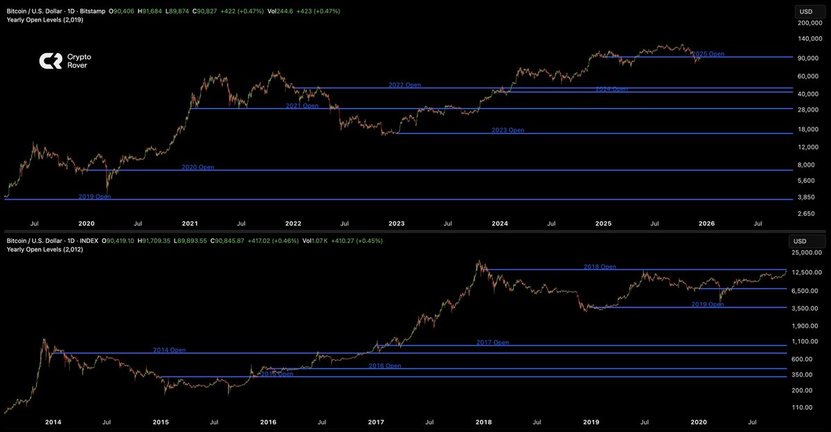2014년부터 매년의 연초 시가선을 차트에서 확대해 보면, 일관되게 주요 지지나 저항 구간과 맞물려 있는 걸 볼 수 있다.