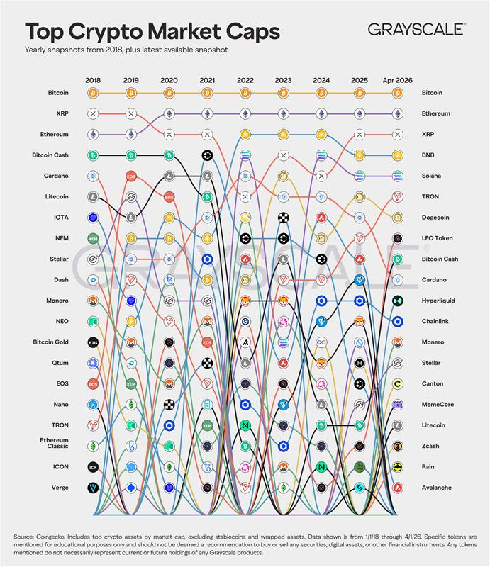 2018년부터 지금까지 시총 상위 코인. 누가 빠졌지? N 2018: BTC XRP ETH BCH ADA LTC IOTA XEM XLM DASH XMR NEO BTG QTUM EOS NANO TRX ETC ICX XVG ➡️➡️➡️ 2026: BTC ETH XRP BNB SOL TRX DOGE LEO BCH ADA HYPE LINK XMR XLM CC $M LTC ZEC RAIN AVAX 1시간 전 중립적 9 0 0