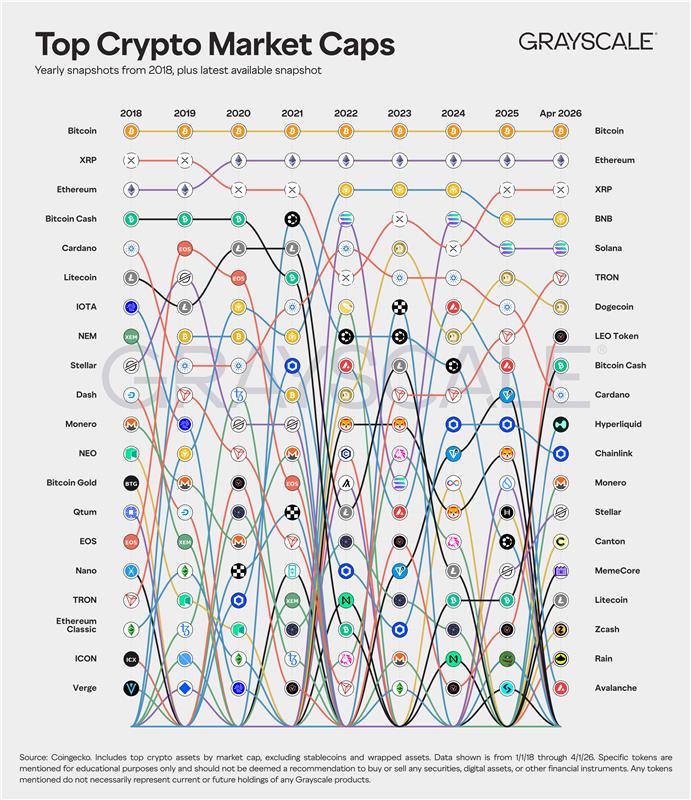 2026: BTC ETH XRP BNB SOL TRX DOGE LEO BCH ADA HYPE LINK XMR XLM CC $M LTC ZEC RAIN AVAX