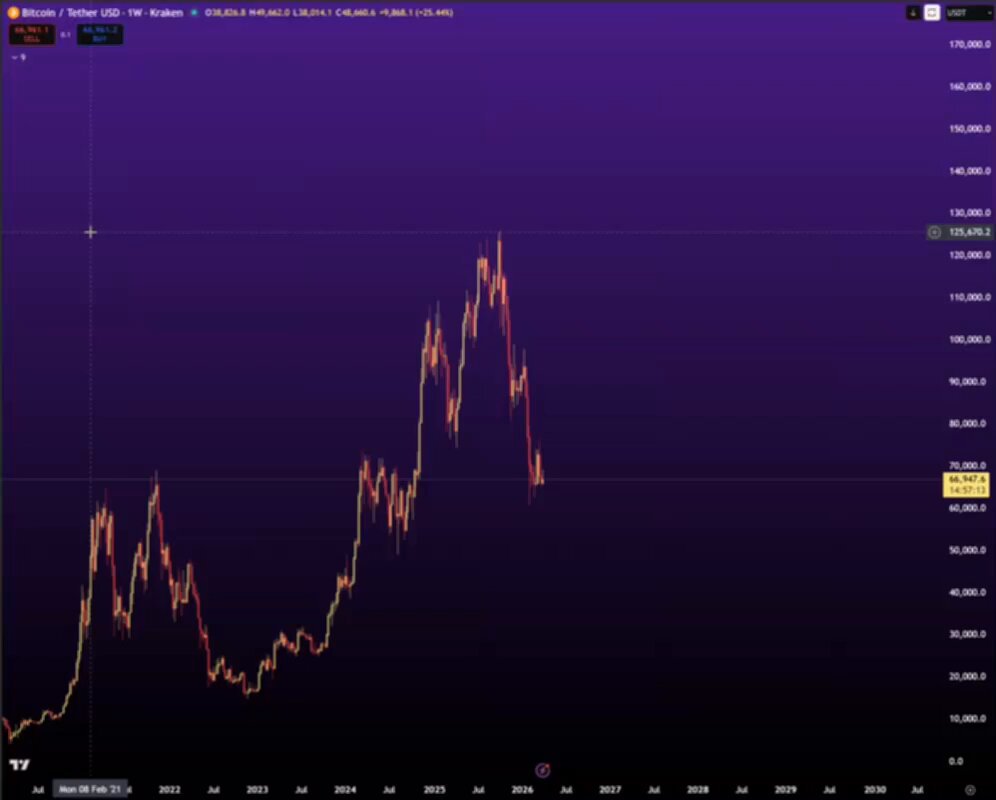 그래서 45K 구간까지 거대한 매수벽이 깔려 있어도, 그게 반드시 $BTC가 그 레벨까지 간다는 뜻은 아님. 가끔은 매수 호가가 체결 안 된 채 남아 있거나, 가격을 더 낮추려고 유도하는 스푸핑용으로 쓰이기도 함. 그렇다 해도, 현 시세(67K)부터 5만 중반대까지 현물로 사두는 건 장기적으로 꽤 좋은 진입이 될 가능성이 높고, 1년 뒤 돌아봤을 때 잘 샀다고 느낄 자리일 듯. 모든 매수 호가를 전부 다 채울 필요는 없음; 보통은 그들보다 앞서서 프런트런할 기회가 있음. 내 장기 현물 플랜은 이미 아는 대로, 69K, 65K, 60K에서 현물 진입 체결됨. 내 HTF 플랜 레퍼런스: