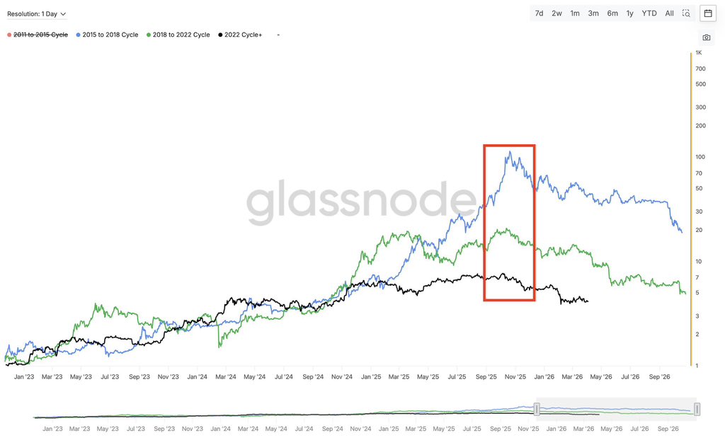 마이클 세일러는 비트코인 4년 사이클은 끝났다고 함. N 근데 데이터는 다른 얘기함: 사이클이 사라진 게 아니라 압축되는 중. 수익률은 낮아지고, 정점은 더 일찍 오고, 순환매는 더 빨라짐. $BTC는 성숙해지는 중 ✅ 2시간 전 중립적 10 0 0