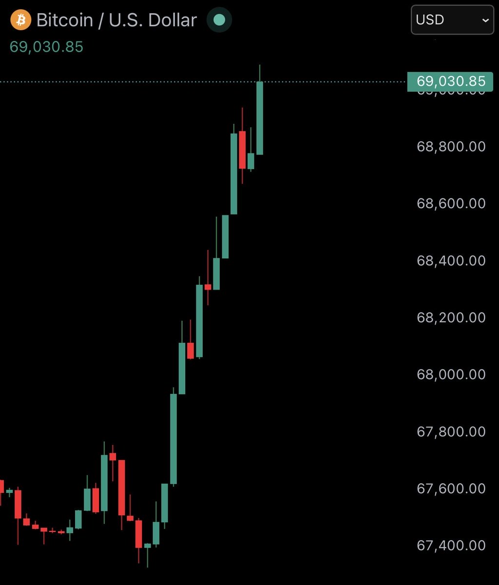 속보: 비트코인, 지난 60분 새 1,600달러 펌핑하며 6만9천 달러 찍고 숏 포지션 약 8,100만 달러… N 미국 선물지수는 아직도 마이너스라, 미-이란 딜 관련 호재를 선반영해서 먼저 달린 걸 수도 있고, 아니면 주말에 숏 털기용 장난질이라 내일 아침 미장 열리자마자 상승분 싹 다 반납할 수도. 1시간 전 중립적 20 0 0