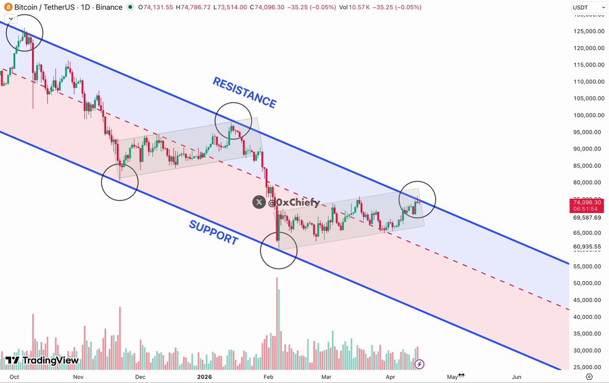 비트코인은 지금 7만3천~7만5천 달러 저항 구간에 있다. 1시간 전 중립적 14 0 0 다음 주엔 이 저항이 지지로 전환되고, $BTC는 3만5천~3만8천 달러 구간까지 덤프 날 거다.늦기 전에 이 차트 북마크해놔. 코인 언제 매수하면 될까? 코인와이 AI차트가 알려줄게요! 차트보기 실시간 암호화폐 소식 인기글 4시간봉 숏으로만 바뀌지 마라 업비트 잡코 펌핑할돈 다떨어졌나 비트 구름대 돌파 시도 나스닥 찐반 가능성 매우 높아졌음 비트코인, 10월 이후 고점 저항 돌파. 다음은 9만 달러 재테스트 메이저 알트들도 이제 뒤지는구나 [속보] 트럼프 마이클세일러 구조작전 시작 비트코인은 매 사이클마다 ATH(사상 최고가) 찍고 정확히 23개월 뒤에 바닥 찍었음 🔥 테더 삼각수렴 중단부, 이번주 상승장 하락장 결정난다 코스피 전고점 살짝 넘기고 죽을걸로 추측 스크랩 0 공유 관련링크 https://twitter.com/0xChiefy/status/2044490840530182349