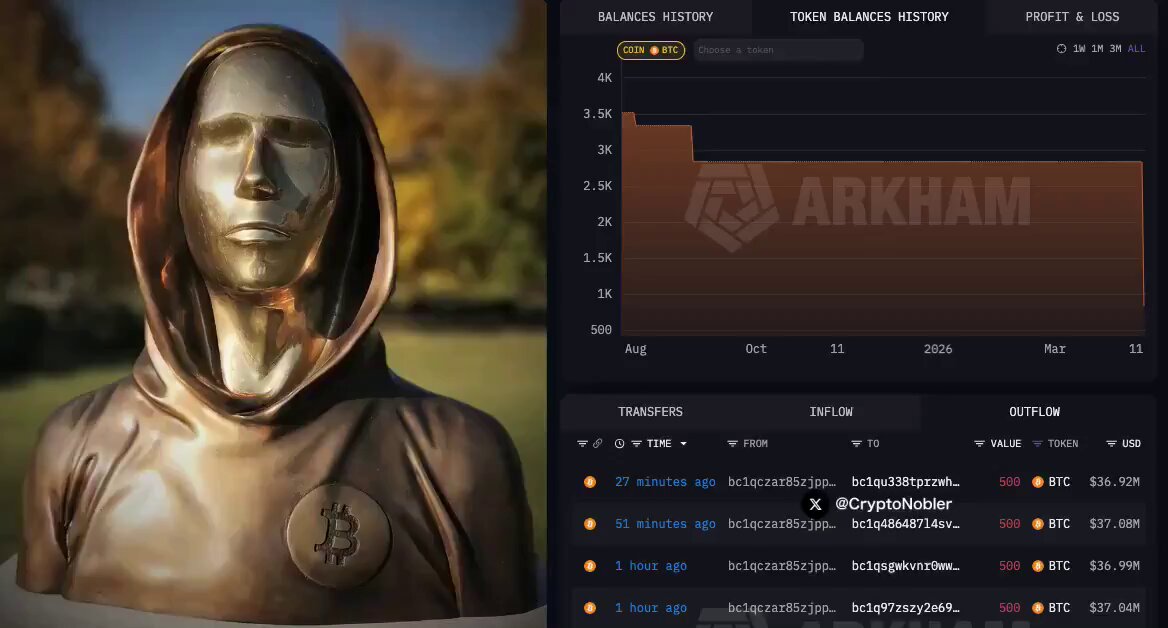 3,500 BTC๋ฅผ ํ ๋ฒ์ ํฌ๋งค, ์์๊ฐ์ 2์ต6์ฒ๋ง ๋ฌ๋ฌ ํ๊ธํ!