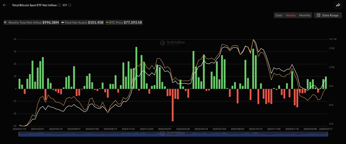불리시: 이번 주 스팟 비트코인 ETF에 약 10억 달러 들어옴. 3개월래 최대 🚀 N 불리시: 이번 주 스팟 비트코인 ETF에 약 10억 달러 들어옴. 3개월래 최대 🚀 1시간 전 중립적 18 0 0