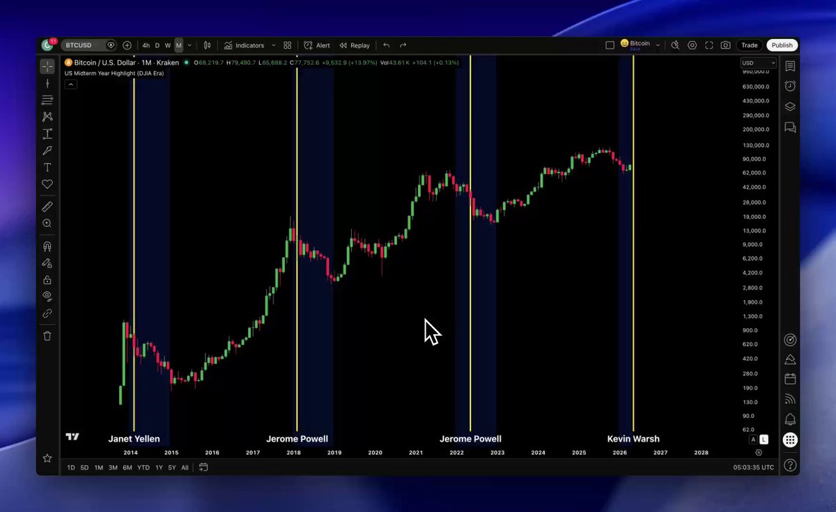 다만 중간선거가 있는 해에도 비트가 약세를 보이는 경향이 있어서, 모든 하락을 새 연준 의장 탓으로만 보긴 어려움.