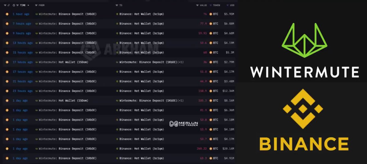 윈터뮤트가 방금 비트코인 수억 달러어치를 바이낸스로 옮겼다.