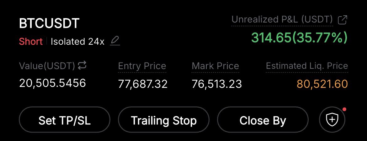 이건 진짜 미친 도박이다!!! 방금 어떤 트레이더가 40배 레버리지로 BTC 3천만 달러 규모 숏을 열었음. 청산가: 78,586.38달러. 비트코인 가격이 2천 달러만 더 오르면 바로 풀청산. 1일 전 중립적 89 0 0