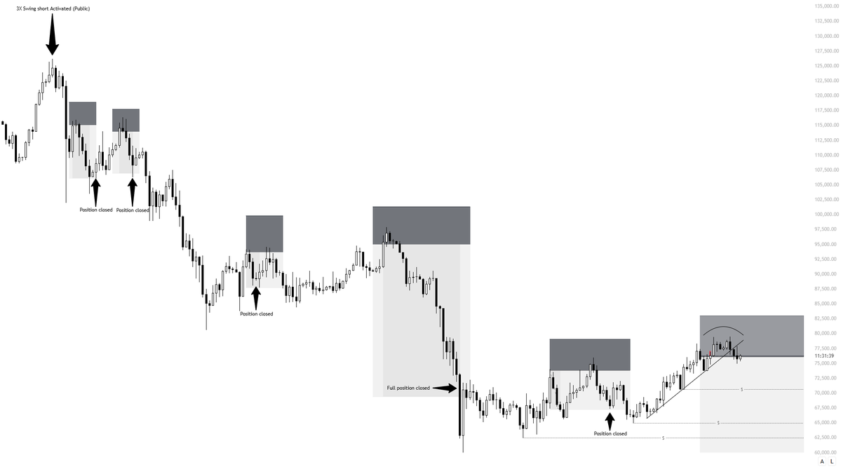 78K 애드 일부 트림해서 평균 진입가 끌어올림(74.6K → 76K대), 원래 포지션 사이즈는 유지.