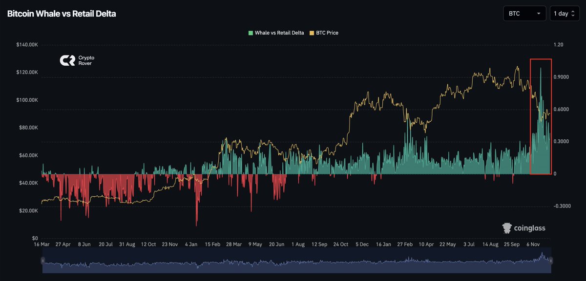 비트코인 고래들이 개미들보다 롱 포지션을 더 줄이는 중
