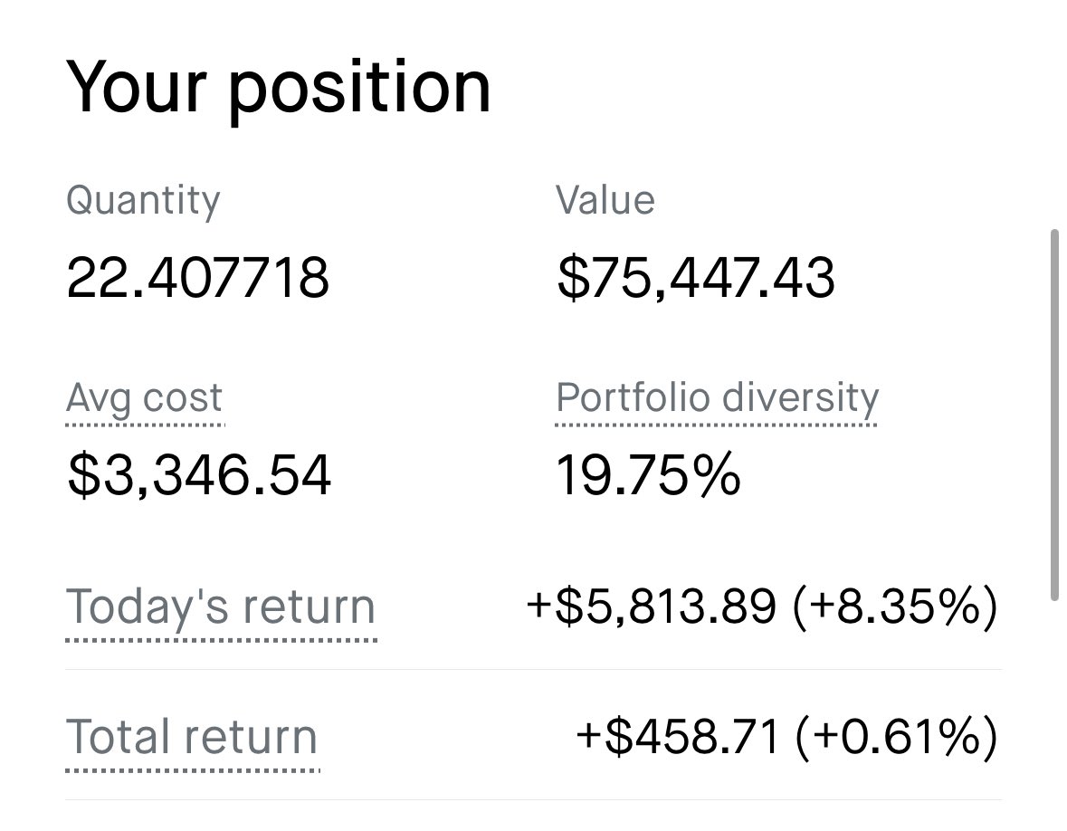 보시다시피 평단은 $3,346. 첫 매수는 $4,100 이상에서 들어감.