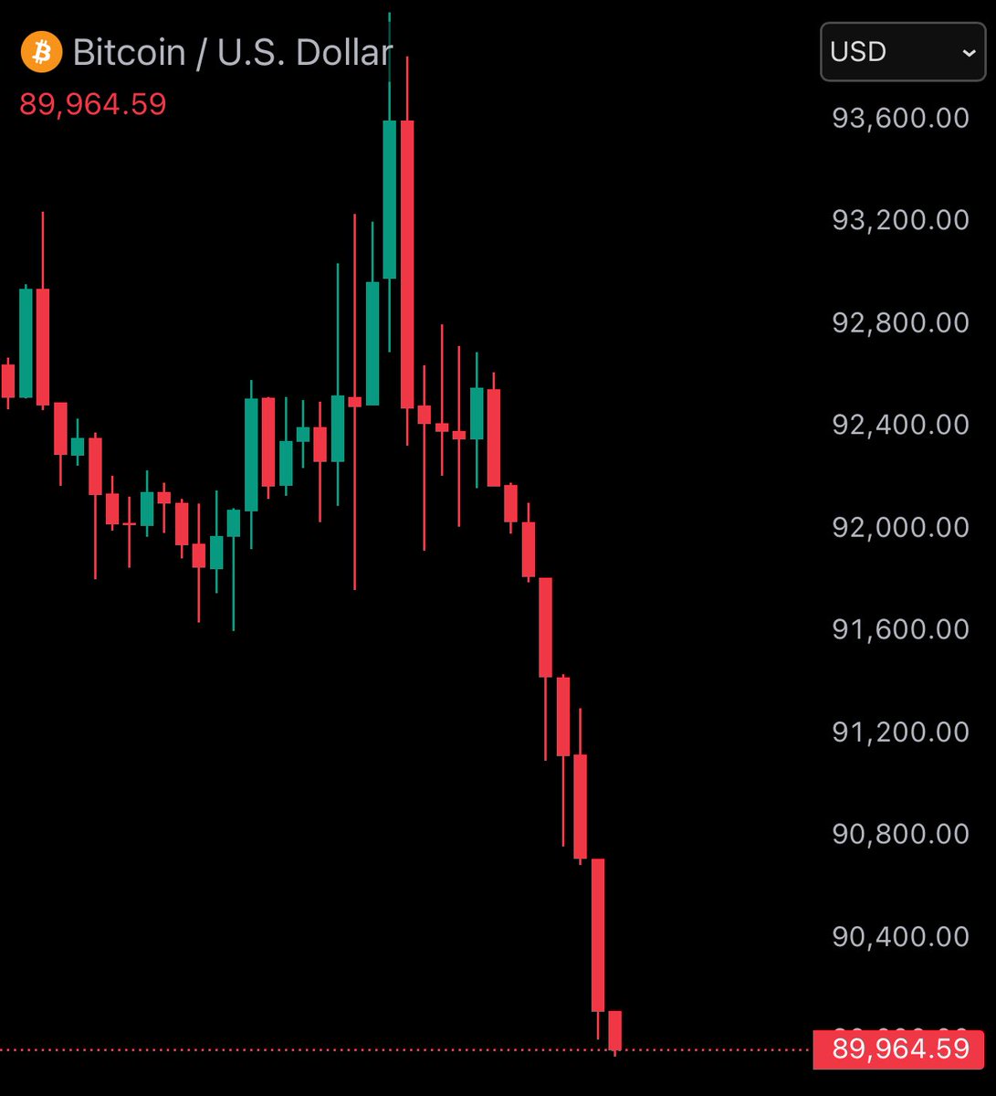 속보: 연준 의장 제롬 파월이 미국 경제 관련 연설을 한 지 몇 시간 만에 비트코인이 9만 달러 아래로 떨어졌다.