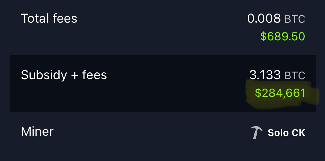 한 솔로 채굴자가 혼자 힘으로 비트코인 블록 하나를 단독으로 찾아냈다.