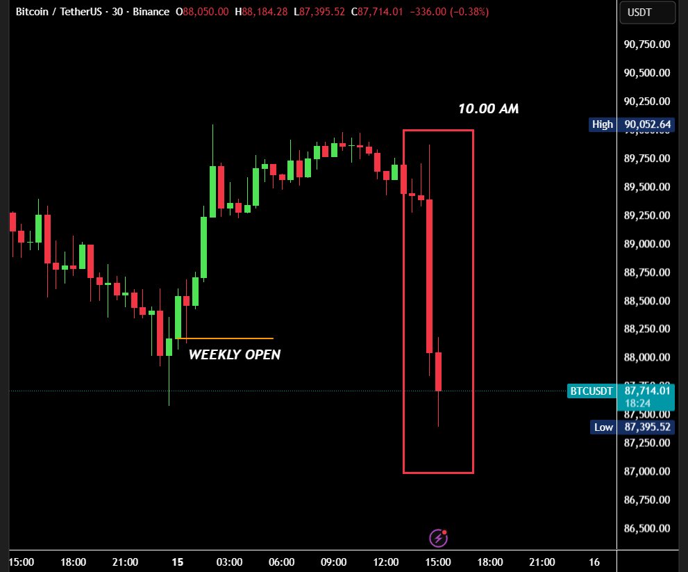 미장 개장하자마자 30분 만에 비트코인 2천 달러 급락.
