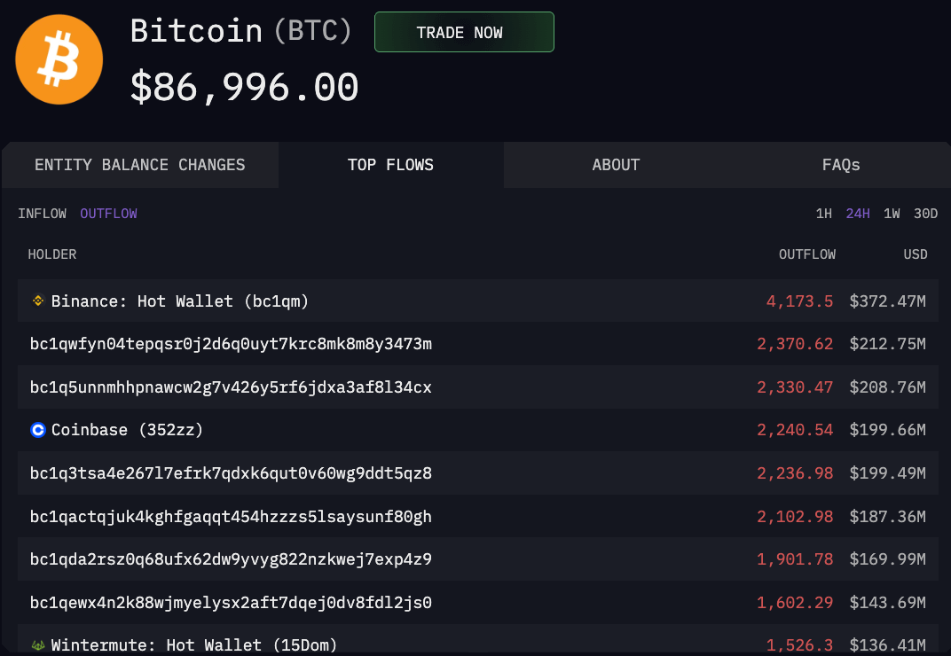 ๋ฐ”์ด๋‚ธ์Šค 4,173 BTC ๋งค๋„