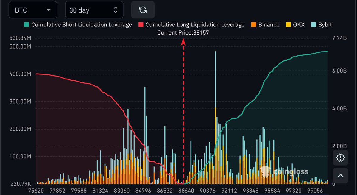 속보) BTC 91,000달러 도달 시 누적 레버리지 숏 포지션 20억 달러 이상 청산 예정