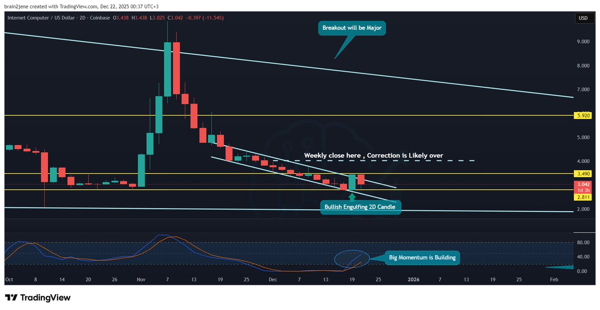 어제 $ICP가 이렇게 움직이면서 이틀 연속 거대한 상승 장악형 캔들이 나왔다고 치자. 반면 #ETH는 아직 기대한 움직임이 안 나왔어 2시간 전 중립적 3 0 0 주봉 기준 4달러 구간만 뚫어주면, 조정이 끝났다고 볼 확률이 더 높아진다고 봐.다음 주는 ICP 커뮤니티랑 #CryptoMarket 모두에게 꽤 흥미진진할 듯. 스크랩 0 공유 관련링크 https://twitter.com/brain2jene/status/2002856133430571097
