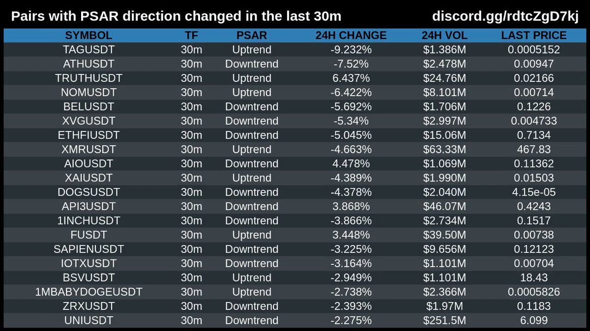 최근 30분 내 PSAR 방향 전환된 거래쌍
