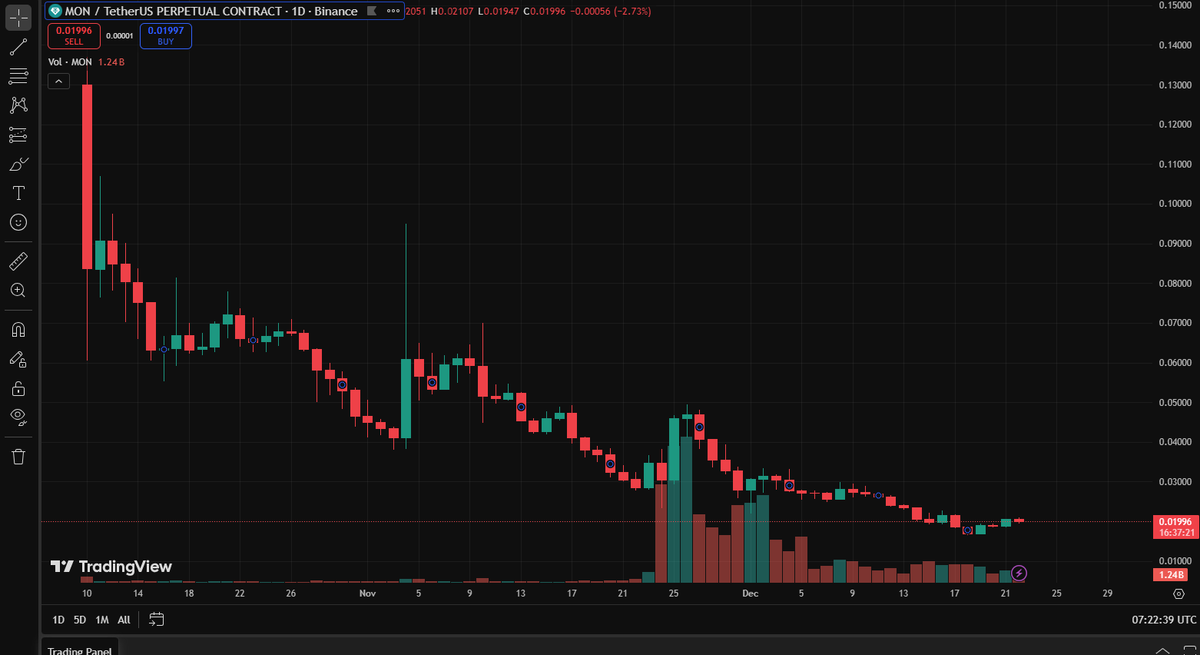 $MON์ ์ฌ์ ํ ๋๋ ทํ ํ๋ฝ ์ถ์ธ ์์์ ์์ง์ด๋ ์ค์ด์ง๋ง, ์ ์ฌ์ ๊ธฐ์ ์ ๋ฐ๋ฑ ๊ตฌ๊ฐ์ ๊ทผ์ ์ค.