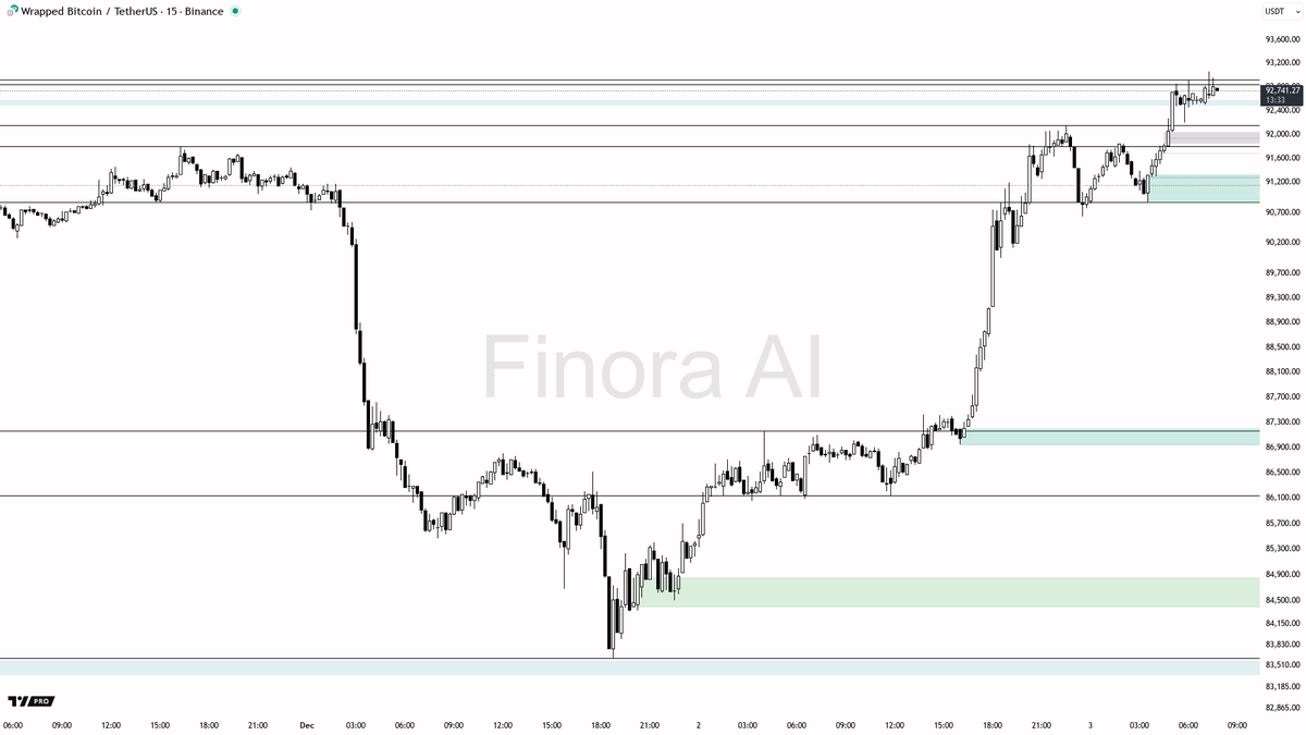 가격은 지금 92837.27과 93284.08 부근의 핵심 공급 구간을 테스트 중이며, 이 영역이 저항으로 작용할 수 있음. 만약 $WBTC가 되밀리면 90873.9 근처 수요 구간이 관건이고, 이 레벨을 지켜내지 못하면 86141.17 하단 지지까지 약세 연속이 나올 수 있음. 포지션 진입 전에는 확인 신호를 꼭 체크하길.
