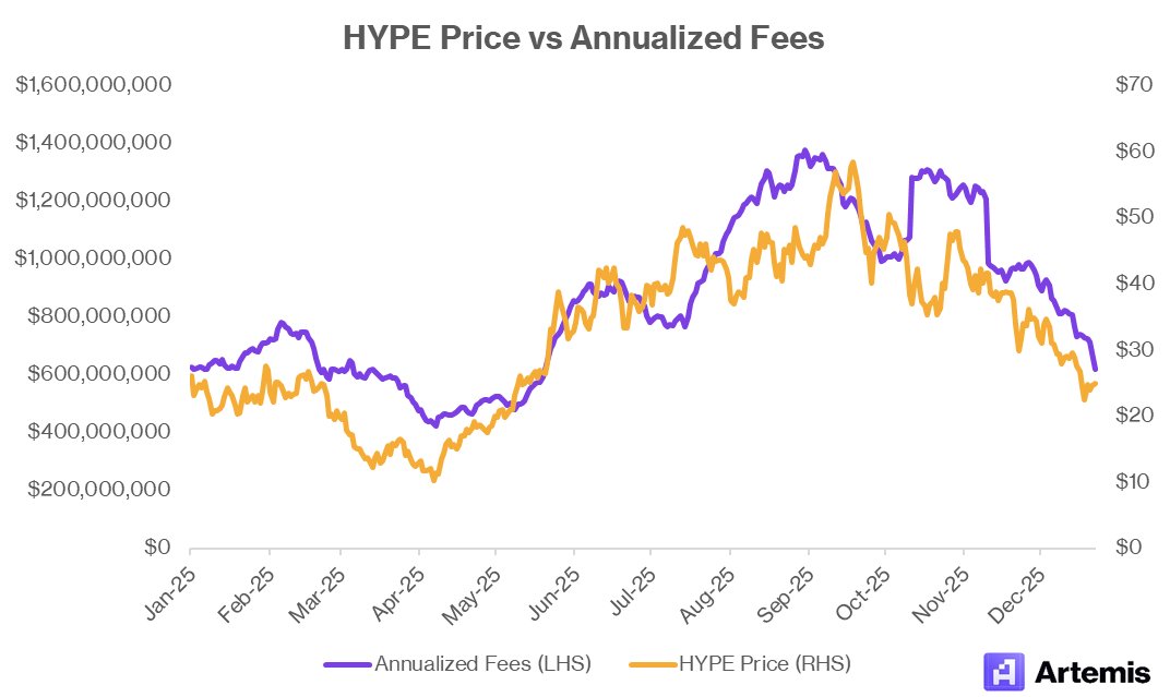 비슷한 흐름이 $HYPE의 MC/Fees 멀티플에서도 나왔는데, 연초 12~13배에서 지금은 9~10배로 내려옴. 이 가격 움직임은 딱 성장주 느낌이고, 매출을 내는 크립토와 전통 핀테크 사이 간극은 앞으로 더 좁혀질 거라 봄.